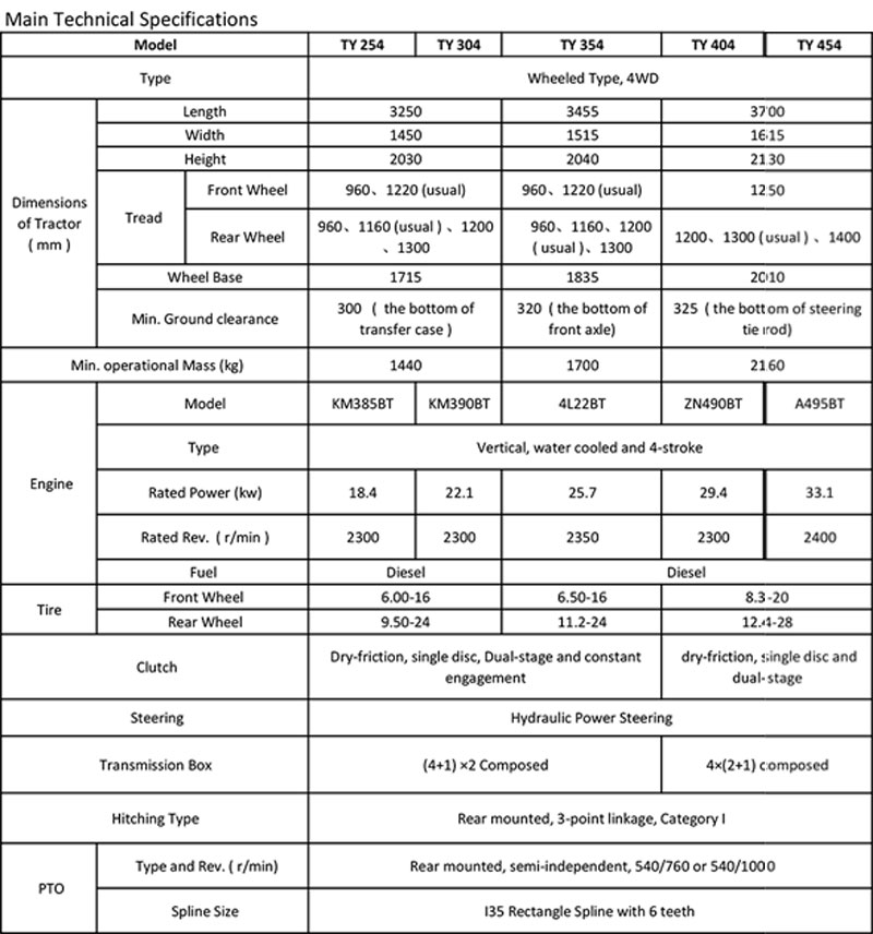 ● The power output can select 540/1000 rpm and other rotating speeds, and can be equipped with a variety of agricultural machines and tools, with a wider scope of application;