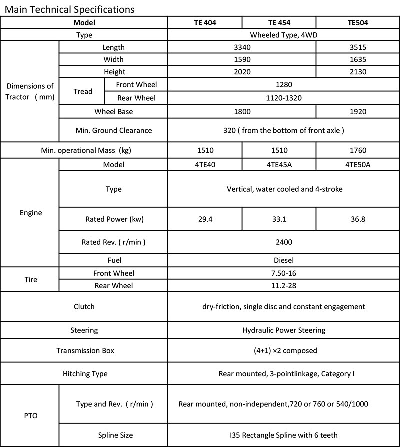 TE series tractor features: