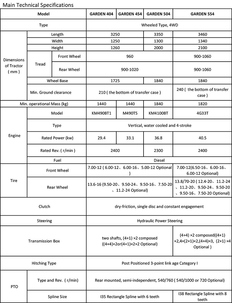 ● The power output can select 540/1000 rpm and other rotating speeds, and can be equipped with a variety of agricultural machines and tools, with a wider scope of application;